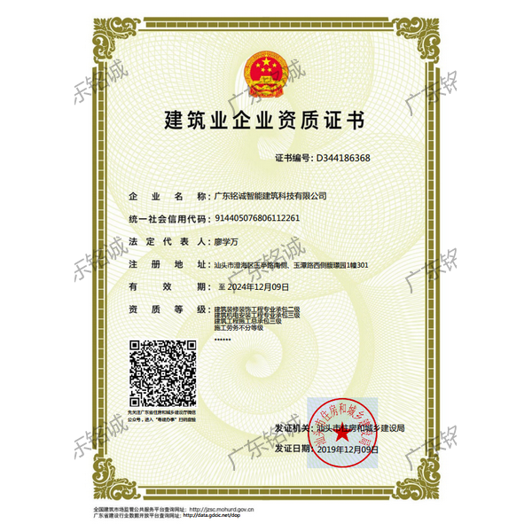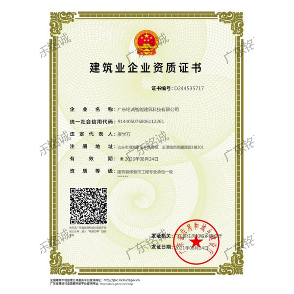 廣東銘誠智能建筑科技有限公司成立于2008年,公司注冊資金為6000萬元,集辦公裝修、酒店裝修、家庭裝修、軟裝裝飾、娛樂場所裝修為一體的裝飾公司,率先提出“創造現代人文空間,挑戰業界高峰”的雄壯口號,并以此為目標,完成了一大批具有影響力的大型公裝工程:其中包括廣州國際中醫藥展貿中心、奧飛澄海音樂廳、澄海區國家稅務局、澄海興信小額貸款、澄海潮商村鎮銀行、汕頭龍湖賓館、澄海豪庭大酒店、御園國際飲食城、澄海福晉軒酒家、享樂匯保健有限公司、假日商務酒店、尚景康園物業、星輝車模股份有限公司、奧飛動漫有限公司、香港國際玩具、汕頭萬基貿易有限公司、泰興源實業有限公司、汕頭皇冠玩具有限公司等;家裝工程包括南澳黃金海岸整幢的精裝房、中信華府、富春華庭、金信鳳凰名城、凱旋花園、中信金城、柏嘉半島、陽光海岸、金葉島等高等住宅。 ? 廣東銘誠智能建筑科技有限公司經過十余年的建筑裝飾裝修施工領域項目積淀,于2018年2月取得“建筑裝修裝飾工程專業承包二級”、“建筑機電安裝工程專業承包三級”、“建筑工程施工總承包三級”、“施工勞務不分等級”、“安全生產許可證”等專業資質,并于2021年8月建筑裝修資質正式升級為“建筑裝修裝飾工程專業承包一級”。這是對企業規模、工程業績、管理水平、誠信表現的肯定,是企業實力與能力的展現。 ? 公司每一項工程都始終堅持“精美設計、精心施工、確保合同承諾;勤奮開拓、追求突出、創造時代精品”的質量方針,力爭做一項工程,樹一座豐碑。 ? ?銘誠擁有一支由專業的營銷精英和客戶顧問組成的營銷隊伍,勤奮、敬業的每一位銘誠員工將本著“贏在別人休息時”的專業精神,為客戶提供全程營銷及售后服務,確??蛻舻暮戏ɡ妫峁w貼周到的服務,做到讓顧客滿意。 ? 銘誠擁有一批資老牌室內環境設計師,以“現代人文空間”為設計理念,為客戶提供人性化、差異化、智能化的室內環境設計服務,準確的將人性化特點與室內環境相融合,達到了“現代人文空間”的和諧統一。 ? ? ? ?自主創新、視社會責任為己任的精神使我們在發展的道路上屢獲殊榮:不斷提升的銘誠品牌知名度和美譽度,靠的是優質的產品,靠的是不斷提升的營業績,靠的是國內的核心技術和誠信的服務。相信通過銘誠人的努力,銘誠將會不斷以新的姿態為提升廣大消費者的生活質量做好服務,為中國裝飾行業設計創新做出突出貢獻。 ? ? “忘掉競爭、共